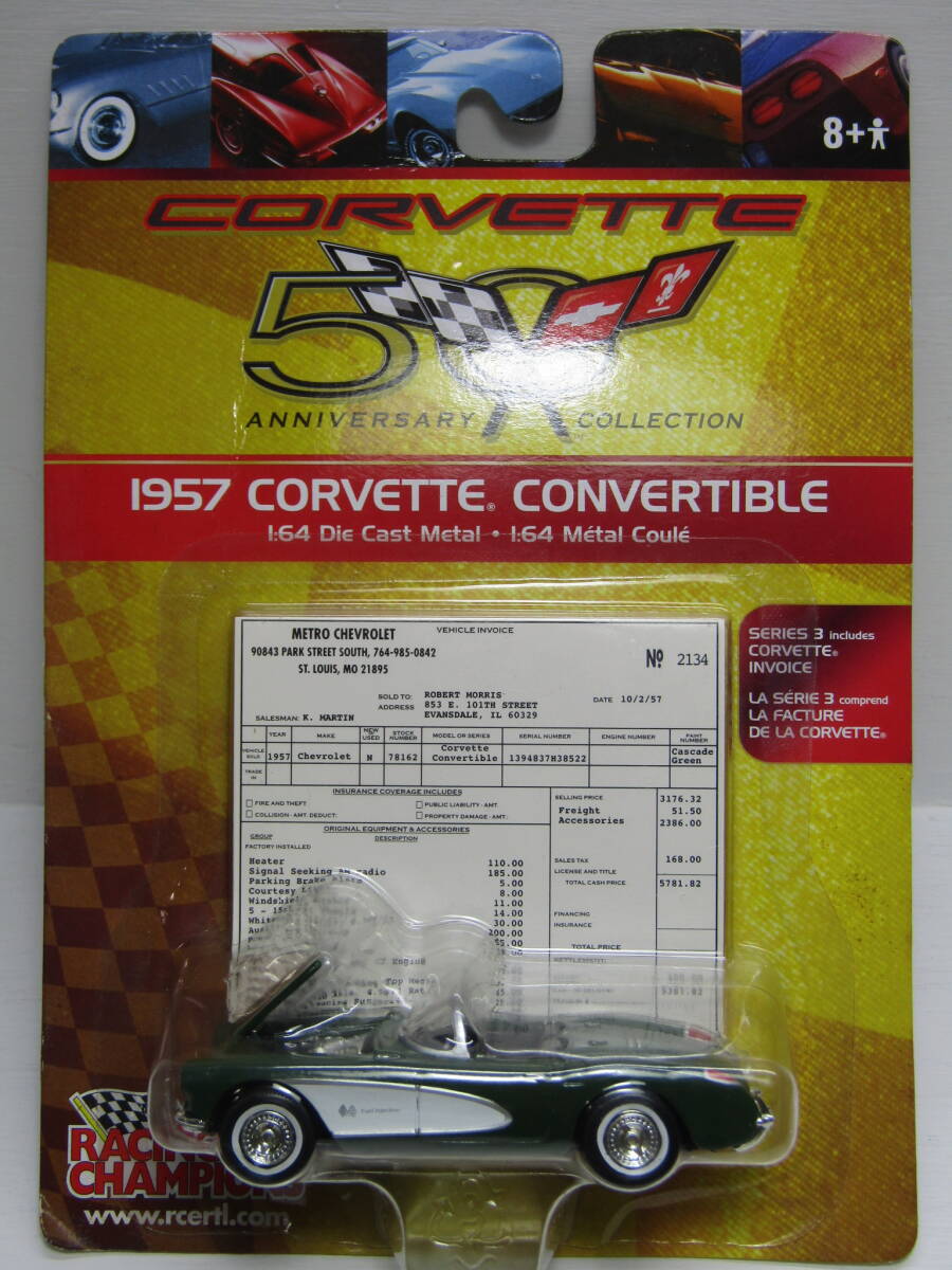 - Chevrolet Corvette シボレー 1957 C1 コルベット 1/64 61 シェビー 50周年 プレート付き 緑 リアルライダー 2003年Racingchampions* 50th