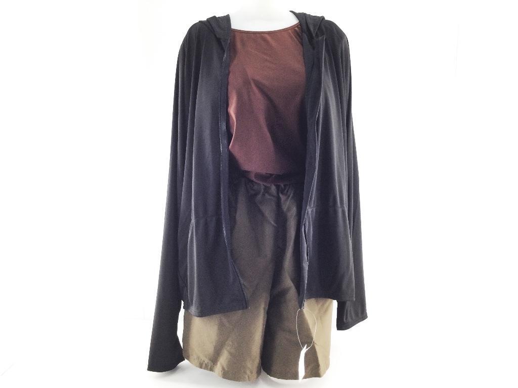- レディース水着 4点セット ラッシュガード 指穴付 パンツ付き半袖タンキニ水着 体型カバー 大きいサイズ 6L ブラック