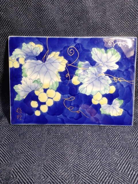 - 深川製磁 タイル絵 葡萄 18x12cm