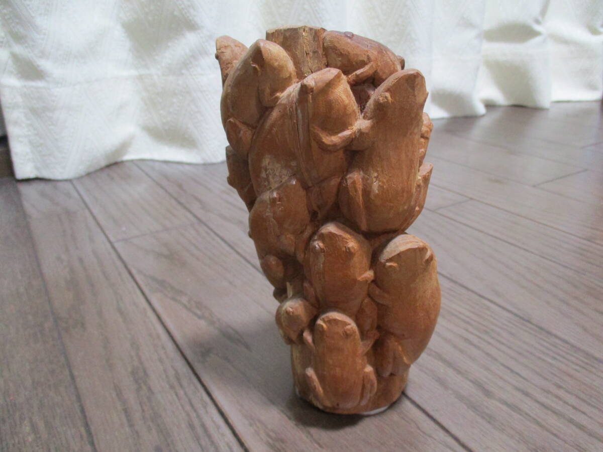 - カエル フロッグ 蝦蟇 木製 作りかけ像 カエルたくさん 18匹ぐらい フィギュア 置物 縁起物 レターパックプラス