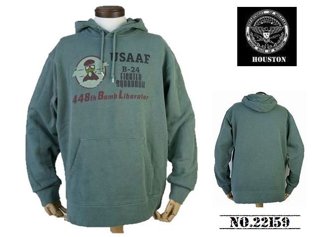 - 【送料無料 43%OFF】HOUSTON ヒューストン ピグメント加工 スウェットパーカー 「USAAF」 NO.22159 OLIVE DRAB_Lサイズ