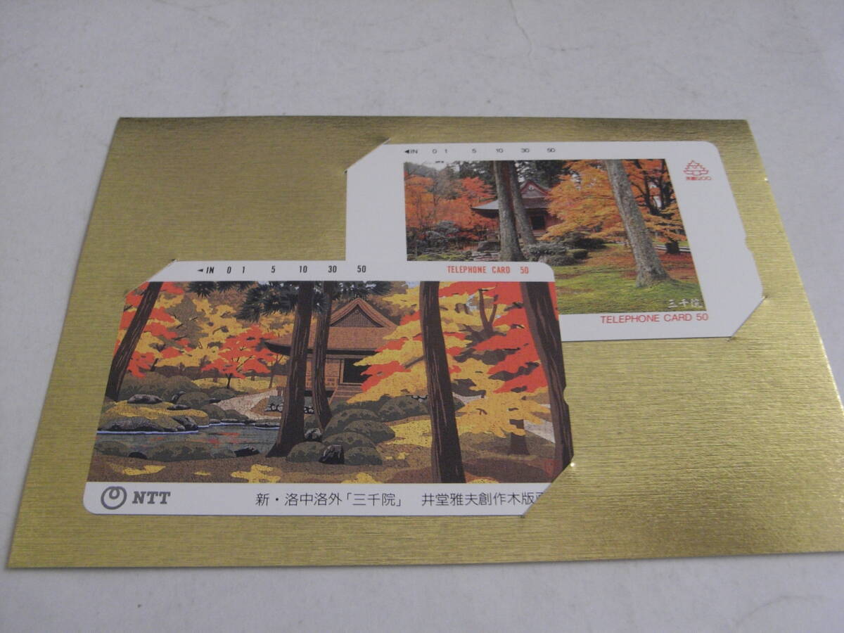 - 三千院・「三千院」井堂雅夫宗作木版画 未使用50度数テレホンカード2枚 NTT 京都支社 1988年5月25日発行