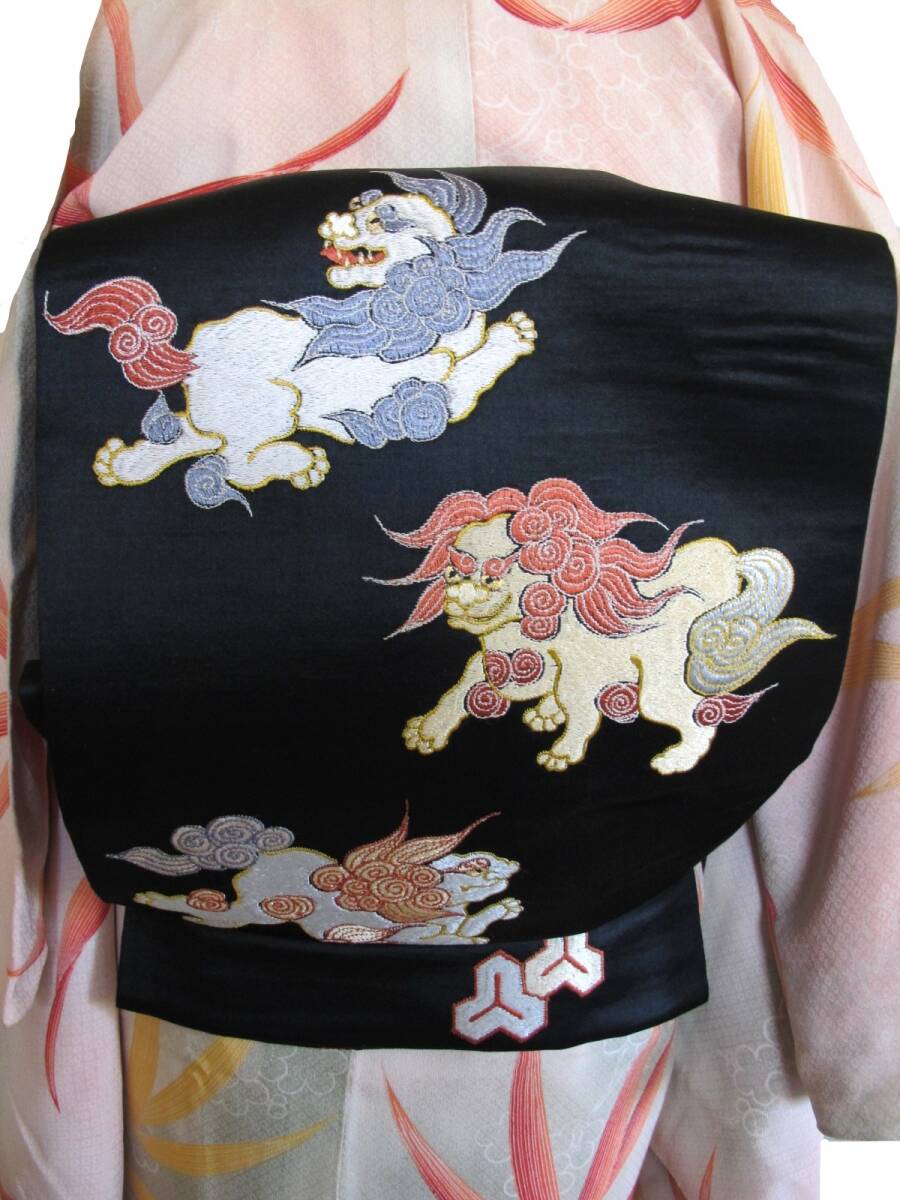 - 三頭の唐獅子 毘沙門亀甲 アンティーク総刺名古屋帯