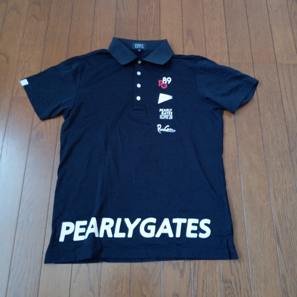 - 1462【中古】PEARLY GATES パーリーゲイツ ゴルフウェア 半袖 ポロシャツ メンズ サイズ M(4)左胸、裾、首後にロゴプリント有
