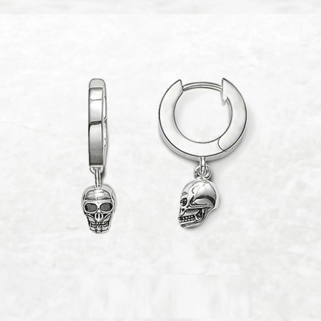 - No17 シルバー925デザインリングピアス メンズ スカルデザイン ドクロピアス 片耳ワイルドデザインリングワンタッチピアス シルバーピアス