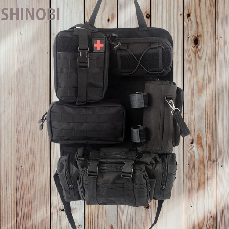 > サバイバル カーシート用 収納カバン掛け 取り外し可能な5つの収納バッグ( 医療用バッグ・水筒入れ 他3バック)オーガナイザー