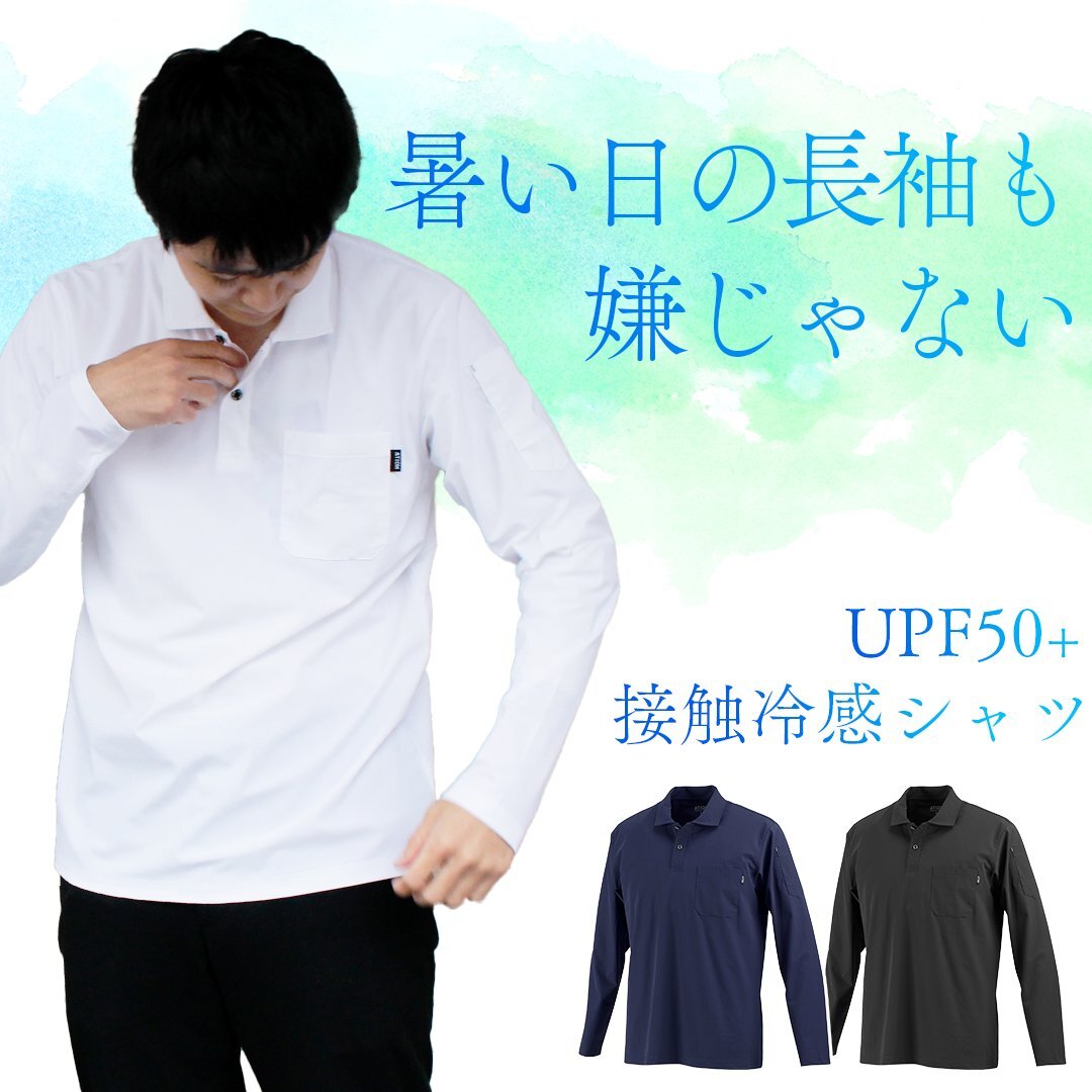 - Qmax 0.33 接触冷感 長袖 ポロシャツ (ネイビー/3L) 吸水 吸汗 速乾 UVカット 紫外線カット UPF50+ 胸ポケット 袖ポケット ゴルフ