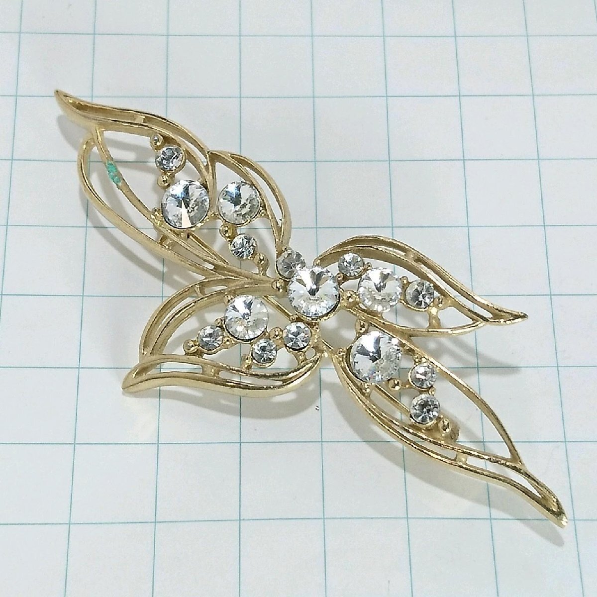 - 送料無料)ビンテージ☆クリアラインストーン☆アンティーク ブローチ A25714