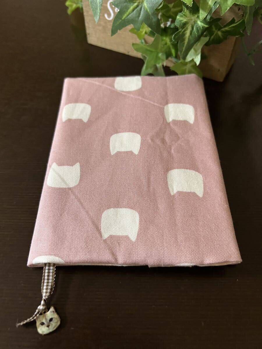 - ☆ハンドメイド ブックカバー 文庫本サイズ 可愛いネコちゃんプリント ネコちゃんチャームしおり付き☆送料無料