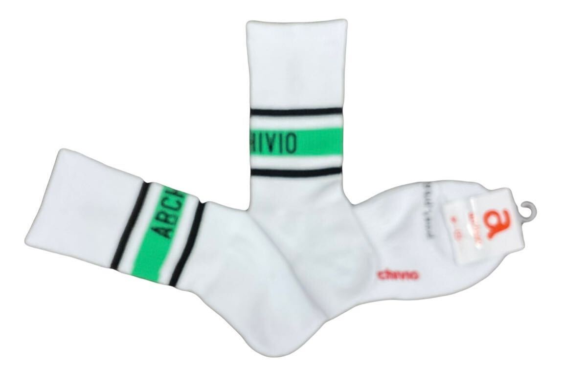 - 2024秋冬 アルチビオ メンズ ソックス 白/グリーン 25〜27