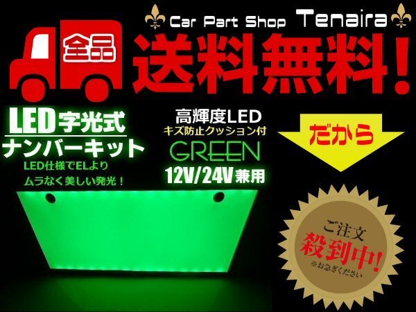 > 12V 24V 兼用 LED 字光 ナンバー プレート キット 1枚 緑 グリーン イグナイター 付 薄型 全面発光 ライセンス プレート 送料無料/3