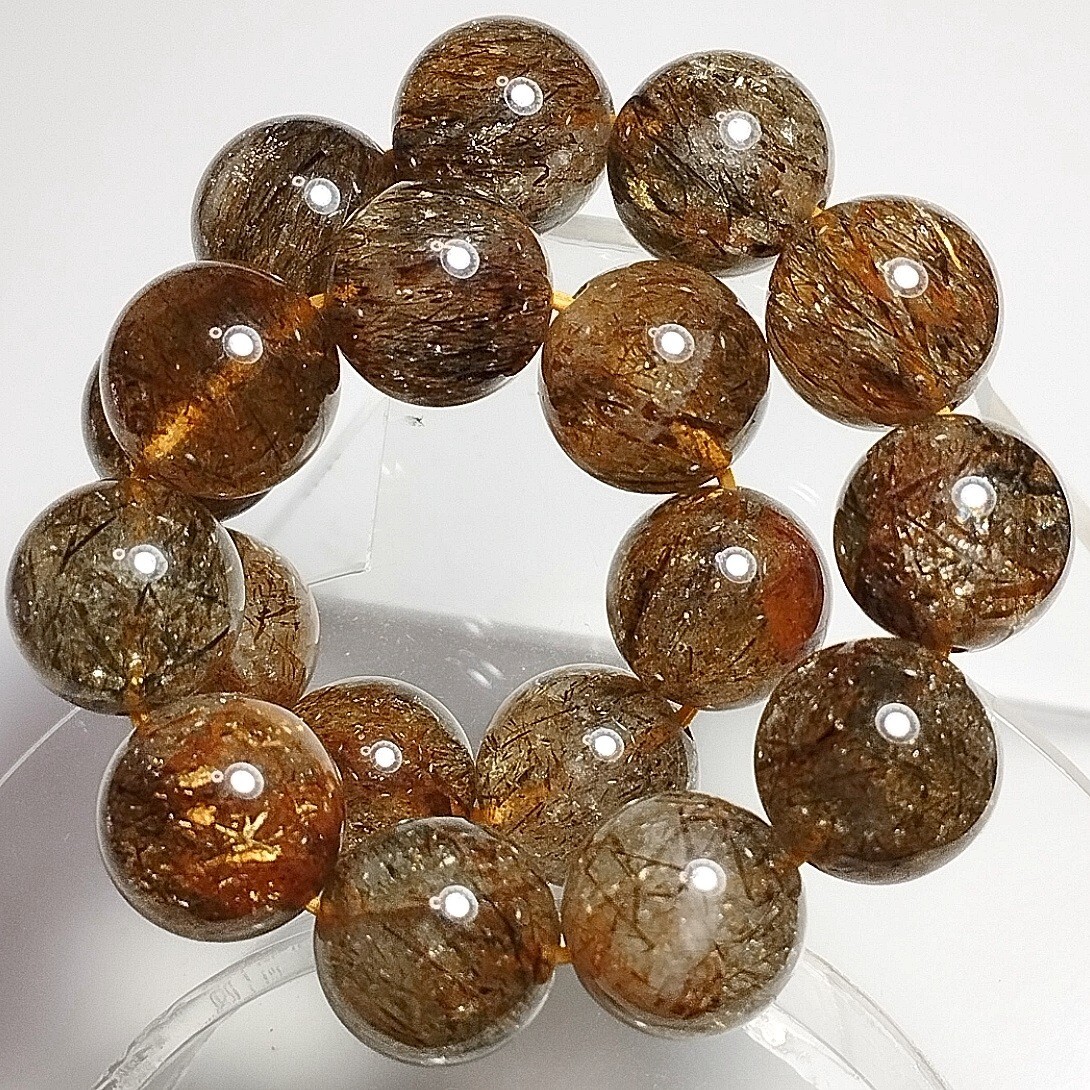 > フォリエーテッドマイカインクォーツ ブレスレット ダーク系 11mm 16.5cm スーパーセブンルチルクォーツ ブラックスーパーセブン