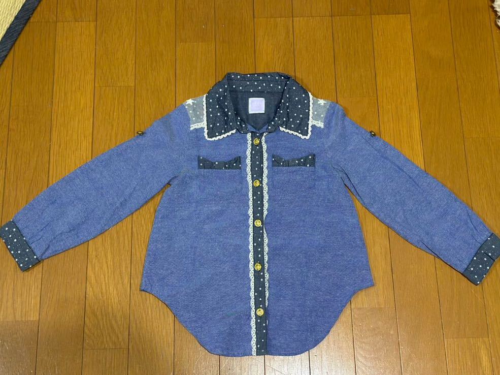 > アクシーズファム/axes femme kids/キッズ/ウエスタンシャツ/シャツ/袖口ロールアップ/2way/トップス/120cm/レース/リボン/女の子/長袖/