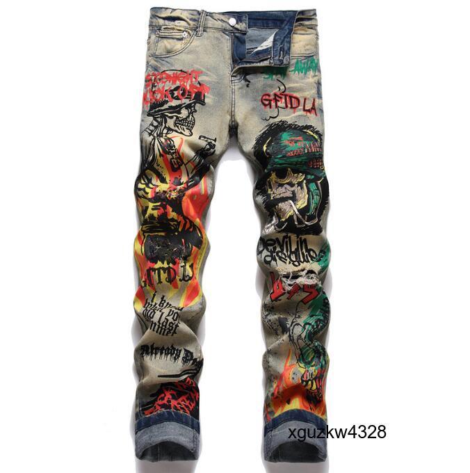 - K52●メンズ デニムパンツ ダメージジーンズ Gパン ストレート ストレッチ ウォッシュ ロング丈 細身 個性 カジュアル