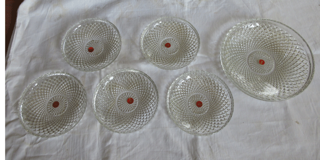 - ☆未使用:ガラス工芸品:☆涼しげなガラスの大皿と小皿6点セット