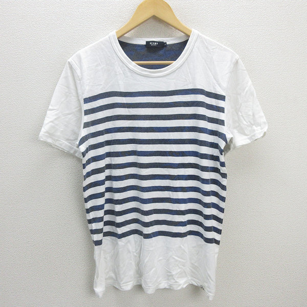 > G■ビームス/BEAMS HEART ボーダーTシャツ/コットン【L】白紺/men's/102【中古】■