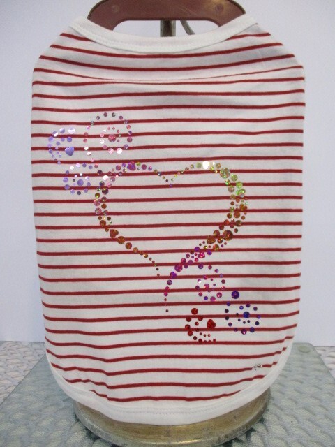 > DOG CAT 犬 猫 ペット 服 綿 ラメ スパンコール クリスタル ボーダー 白 赤 レインボー ハート オリジナル 限定 新品 未使用 サイズ:4号 29
