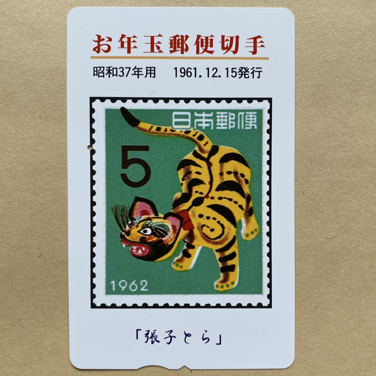- 【使用済】 ふみカード 北陸版 お年玉郵便切手 昭和37年用 1961.12.15 「張子とら」