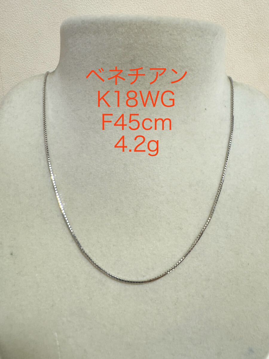 - 【質屋 尾張屋商店 東京】 ☆仕上済☆ K18WG ベネチアンネックレス レディースアクセサリー 45cm 4.2g