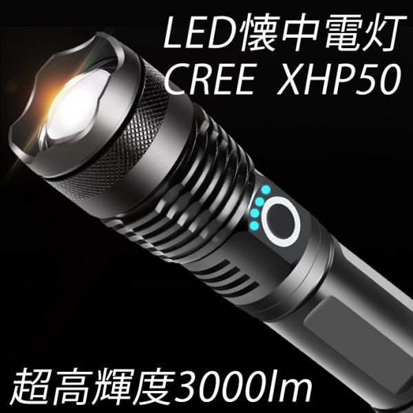> CREE XHP50 LED懐中電灯 フラッシュライト 強力 超高輝度3000ルーメン 伸縮ズーム ハンディライト 充電式 ledライト 5モード