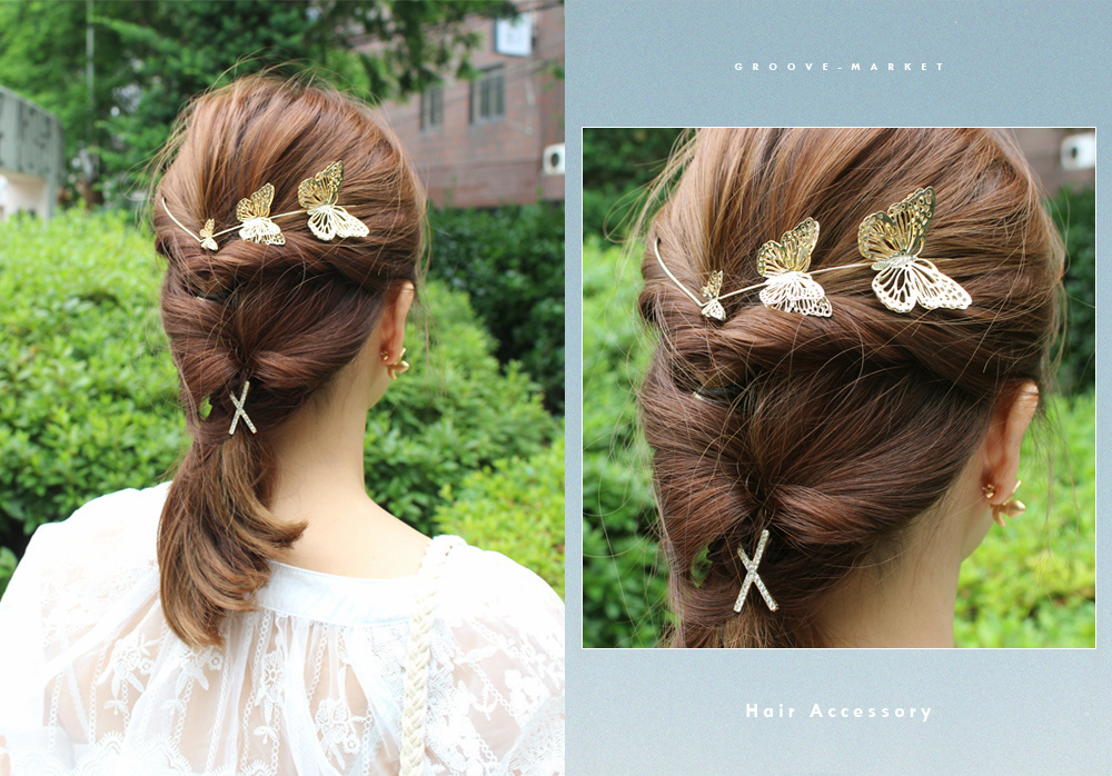 - ★セール値下げ未使用ヘアーバックカチューシャ3Dバターフライ蝶が舞うヘアーアクセサリー浴衣結婚式ヘアーアレンジに非売品★切手★