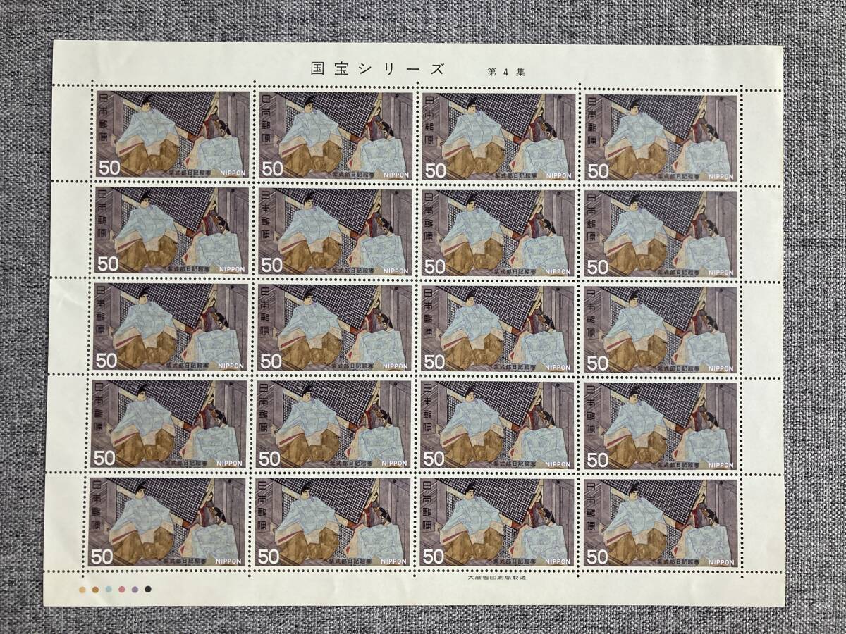 > ★未使用 第2次 国宝シリーズ 第4集 紫式部日記絵巻 紫式部 1977年 昭和52年 切手シート 50円 20枚 日本郵便