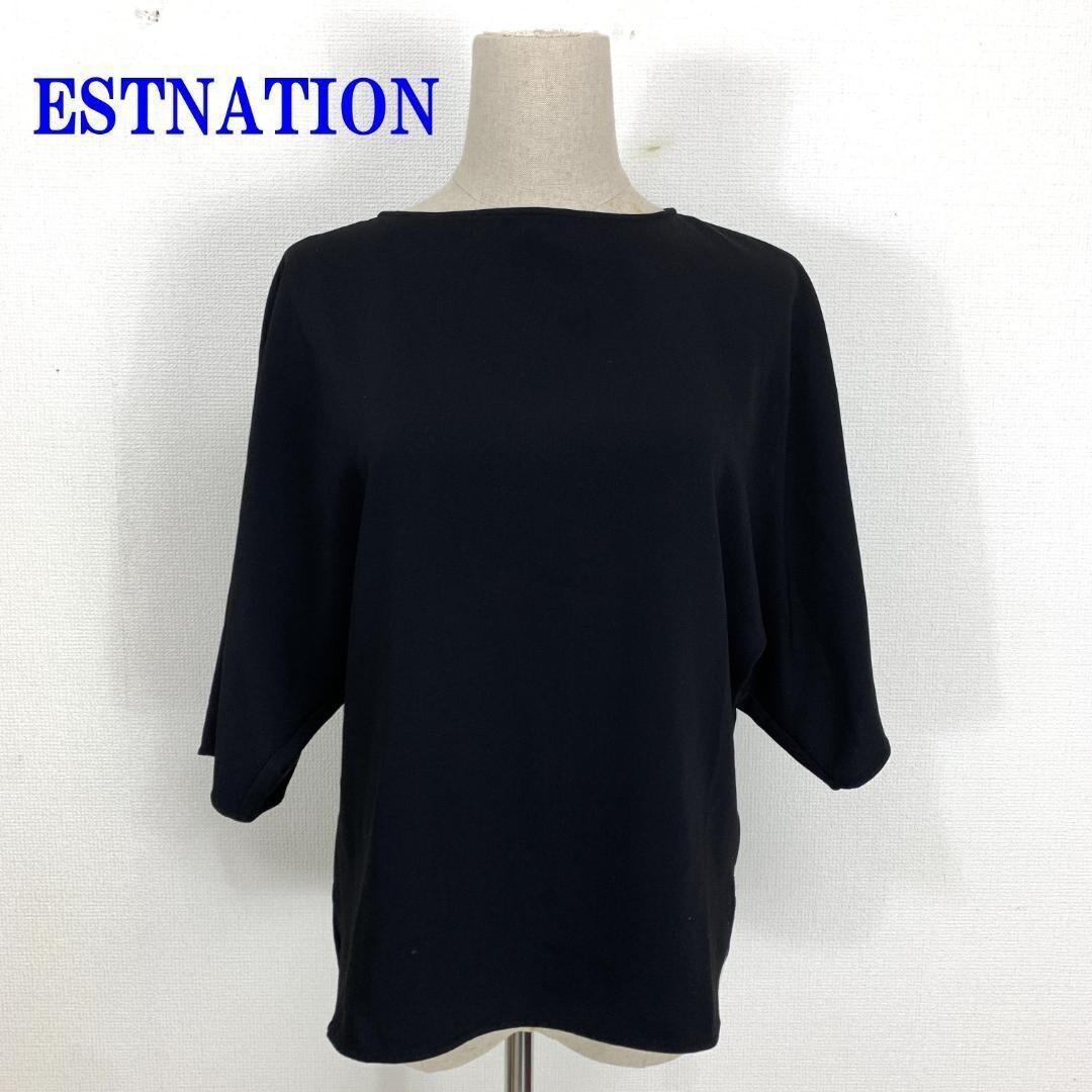 - エストネーション ブラウス シャツ 黒 ブラック ドレープESTNATION 五分丈 ラグランスリーブ M C1008