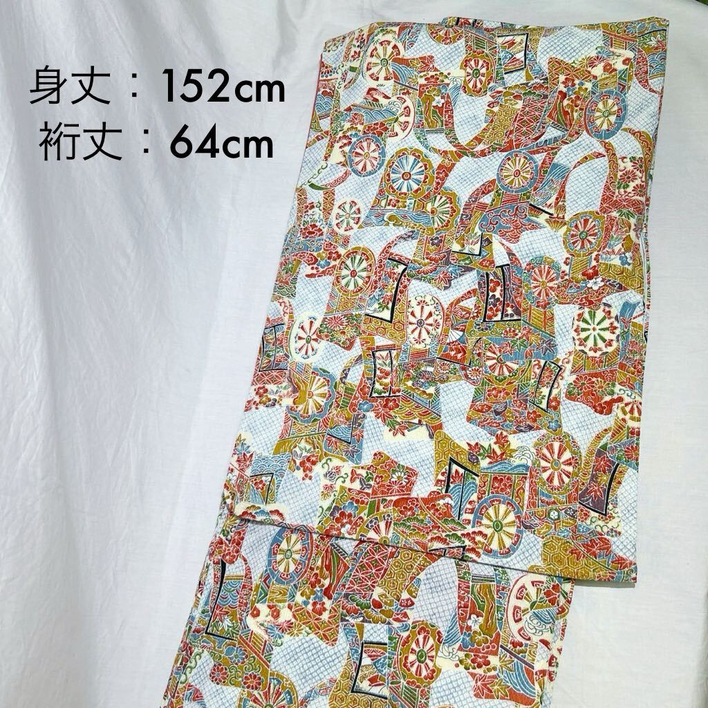 ★ほぼ未使用★ 洗える着物 袷 しつけ糸付き 御所車 絞り風 ひろえり 小紋 洗濯OK きもの 初心者 レディース 女性 和装 (08316②並