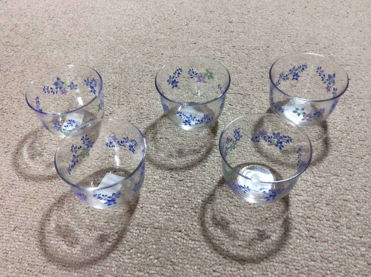 - 未使用 石塚硝子 アデリア グラス 花おり 冷茶グラス 5客 冷茶碗 和食器 外箱付き