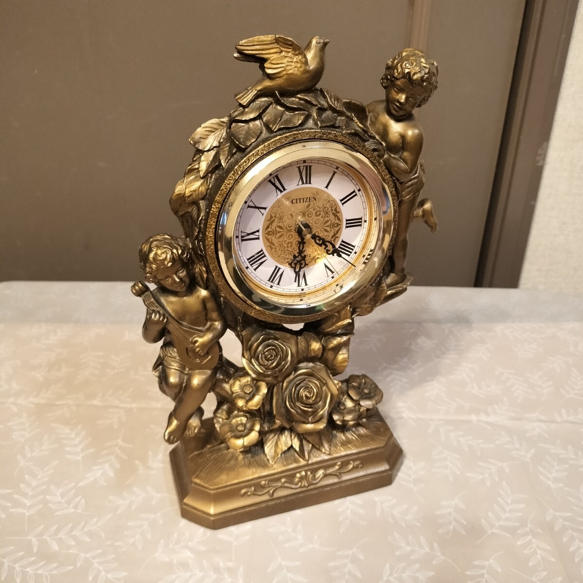 - K08303 ◆CITIZEN/シチズン 置き時計 レトロ アンティーク 天使 エンジェル 薔薇 ローズ 鳩 インテリア◆