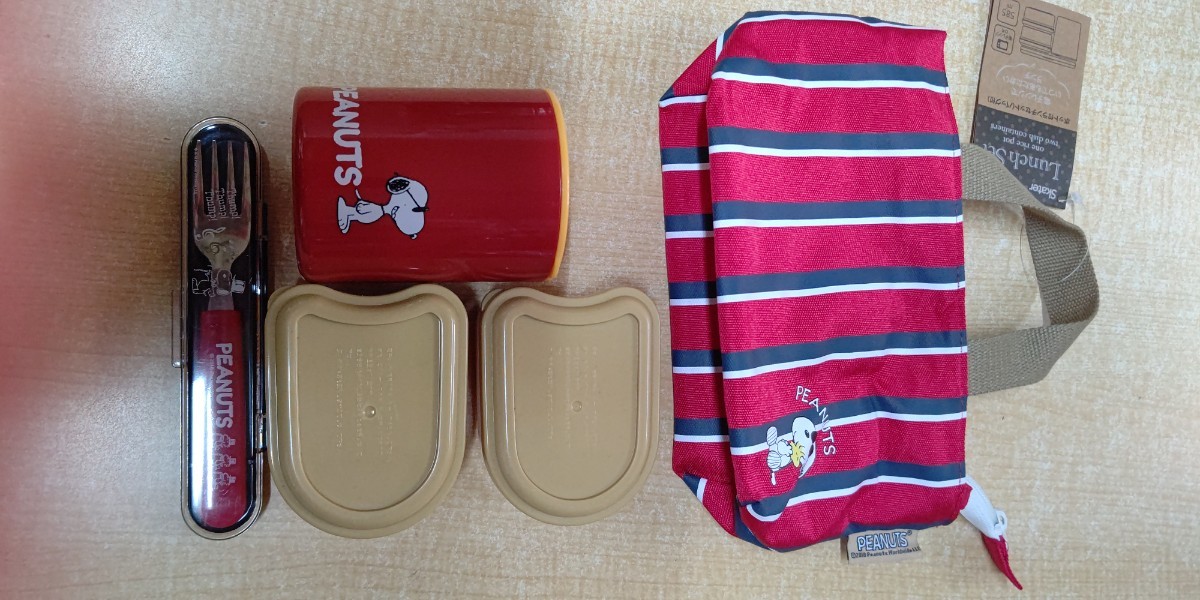 - スヌーピー ポット付 ランチボックス フォーク付 ランチバッグ付 弁当箱 585ml SNOOPY PEANUTS 新品・未開封・即決