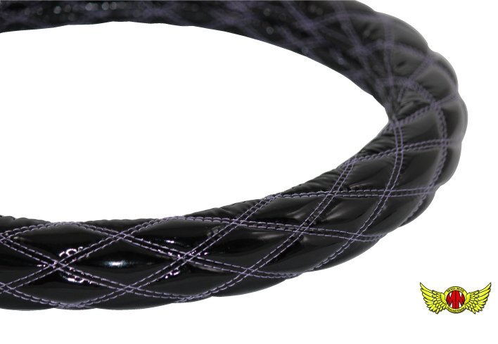 > トラック用品 即納 ハンドルカバー ダブル エナメル ブラック/ライトパープル 2HS(45cm-46cm)/日野 ライジングレンジャー【送料800円】