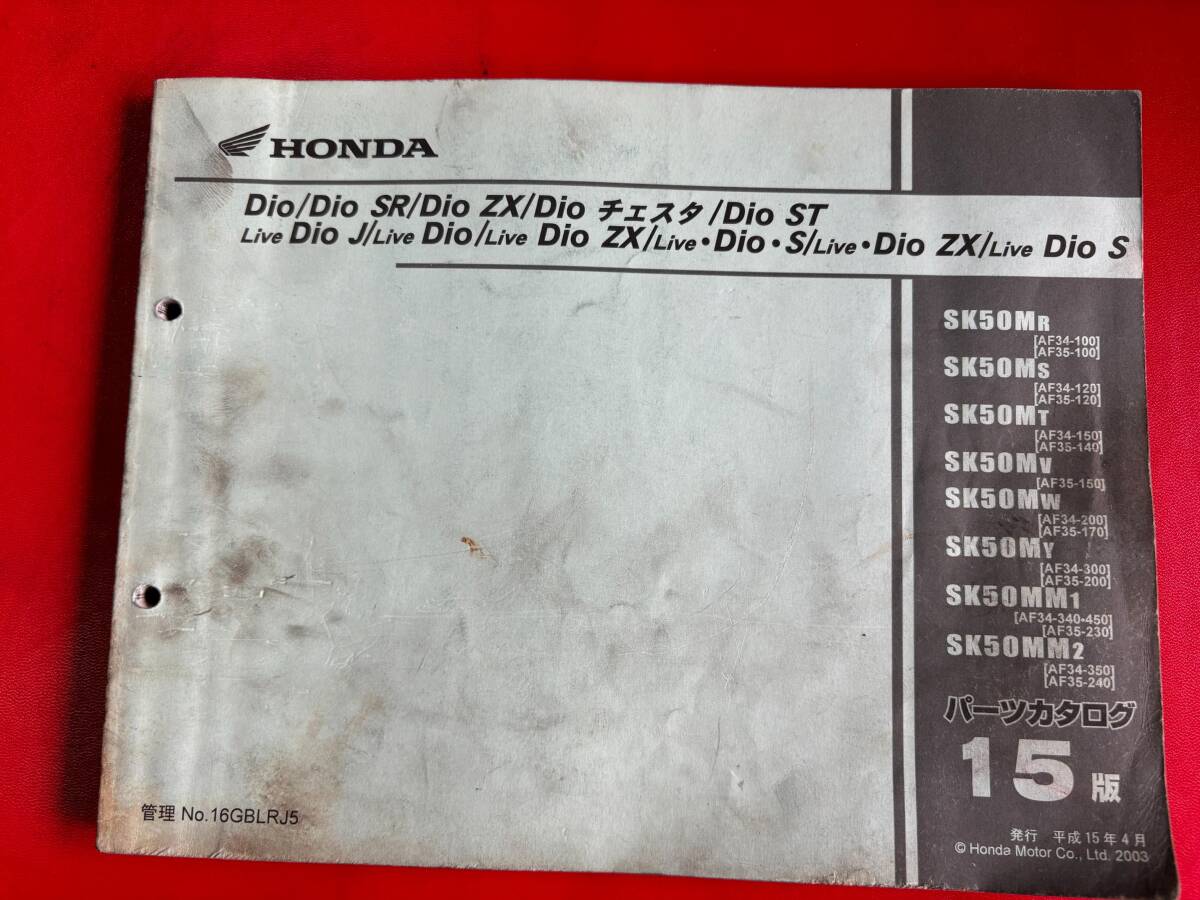 > 15版ディオ/SR/ZX/チェスタ/ST/ライブディオJ/ZX/Sパーツリスト AF34/AF35-100~LiveDio平成15年4月発行 SK50M