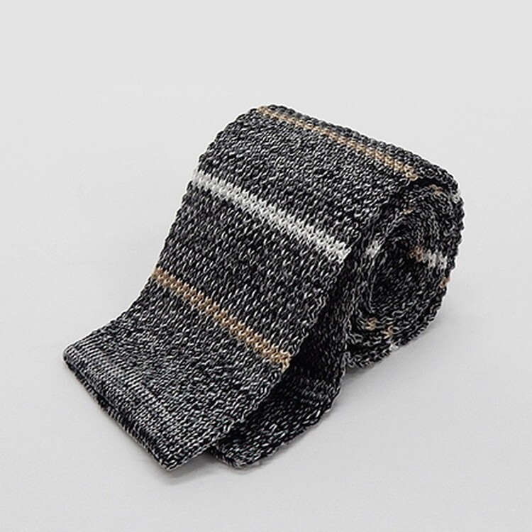 - ニットタイ ネクタイ 剣先6cm シルク100% 黒 ボーダー 霜降り ntt114