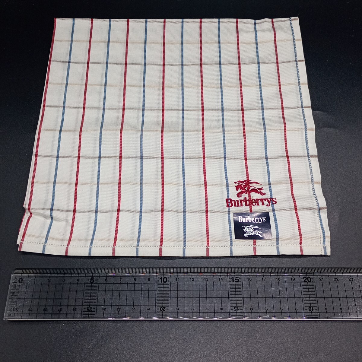 - BURBERRYS バーバリー ハンカチ チェック ホワイト レッドホースマーク刺繍 no.3001