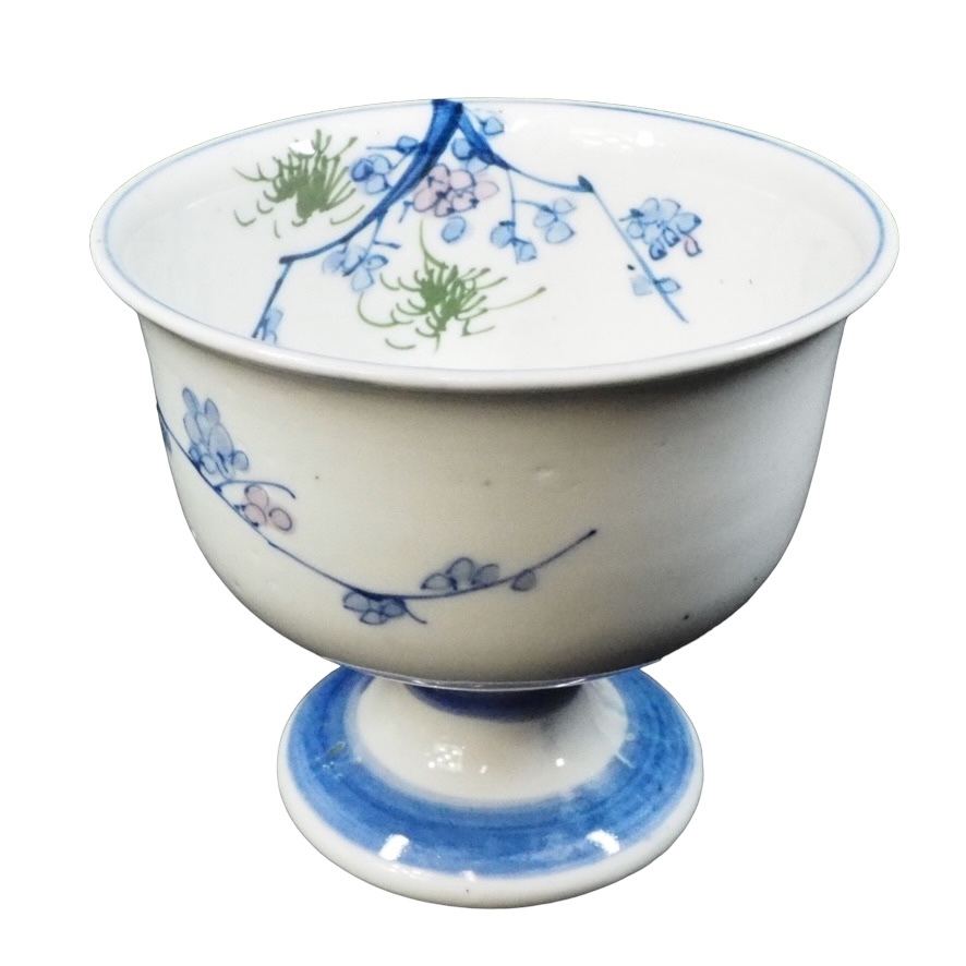 - 大正〜昭和初期ビンテージ 有田焼 陶器製 手描き 染付桜文盃洗 染付 盃 TEF609