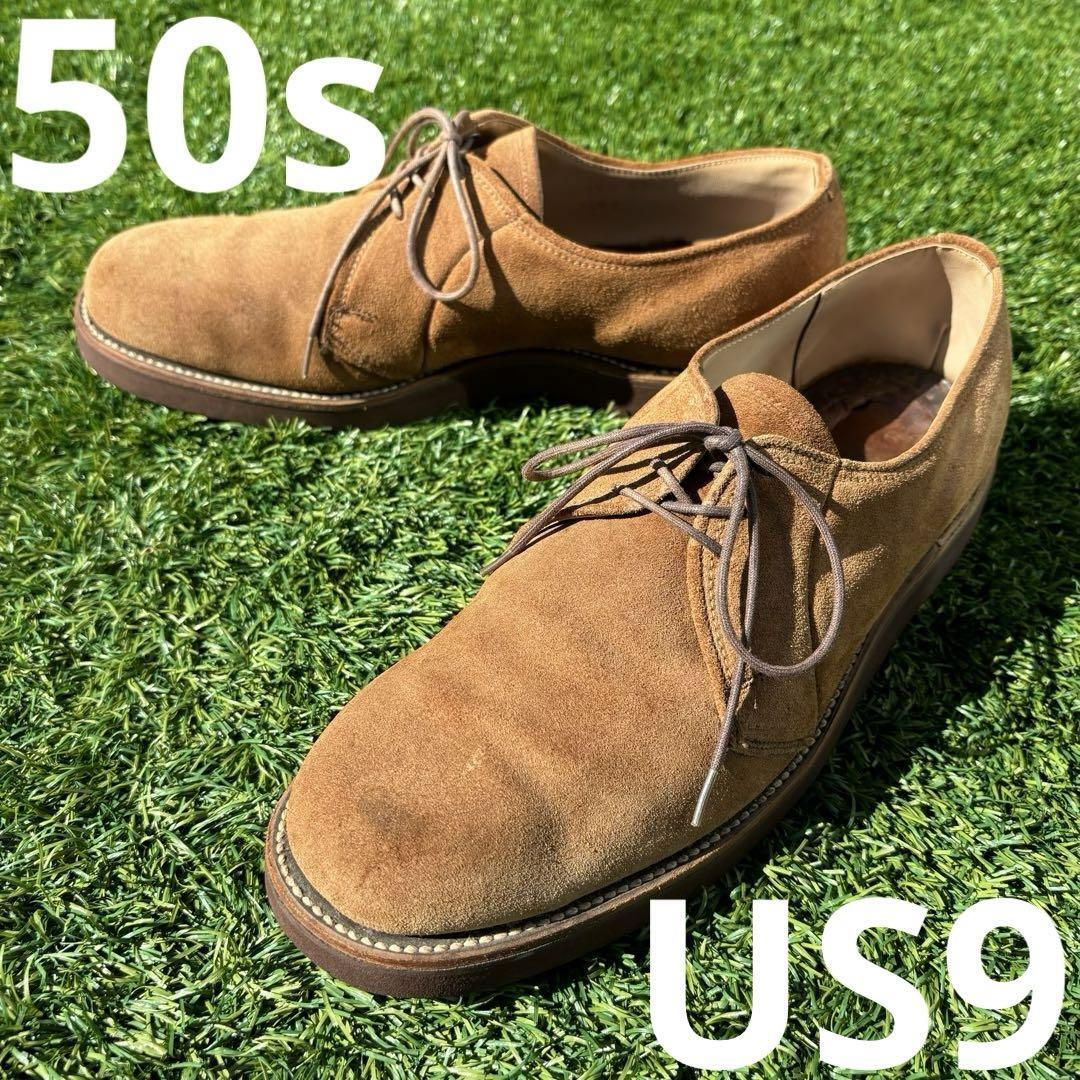 > US9 希少 50s スウェード レザー シューズ プレーン クレープソール レア ビンテージ アメリカ USA 古着 50年代 オックスフォード 短靴