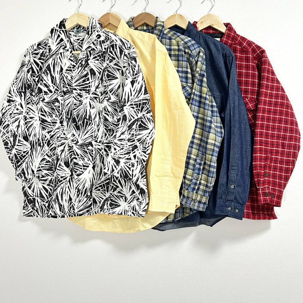 > お得!!【まとめ売り】長袖 シャツ 5着セット UNIQLO ユニクロ シンプソン トロイブロス アメカジ 総柄 チェック デニム メンズM /Y16622TT
