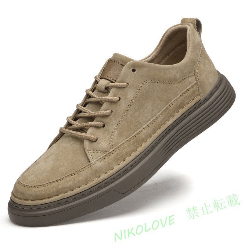 - 新品 スニーカー スリッポン メンズ シークレット 身長アップ カジュアルシューズ ドライビング カーキ 23.5~28.5cm LF919