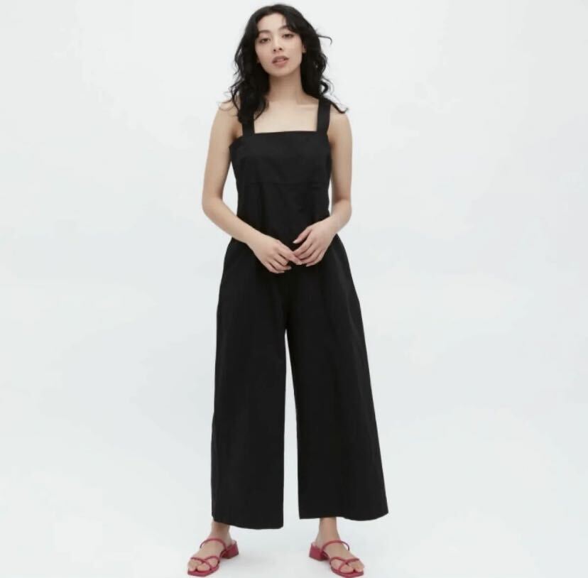 - ユニクロ リネンブレンドサロペット ブラック M UNIQLOオールインワン サロペット オーバーオール