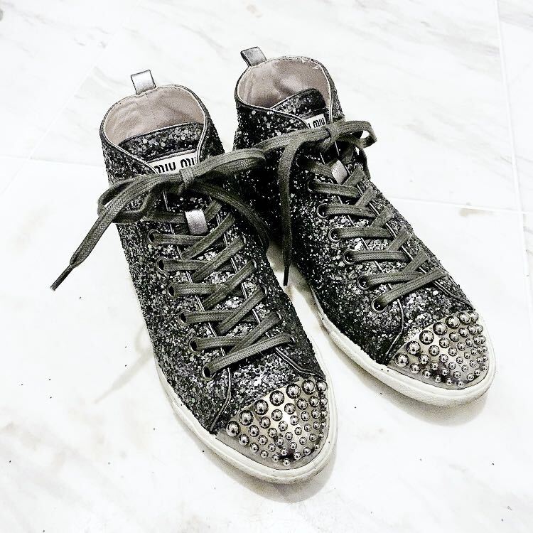- ミュウミュウmiu miu グリッターハイカットスニーカー36,
