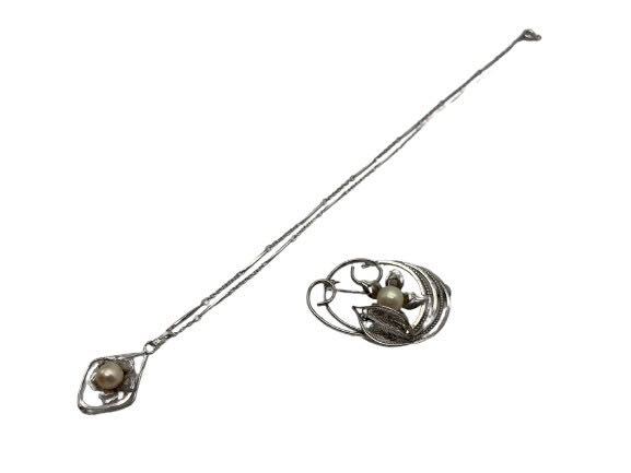 - 【即決価格!!送料無料!!】パール ネックレス&ブローチ 約7mm 真珠 セット シルバー レディース 銀色 アクセサリー 結婚式 礼服