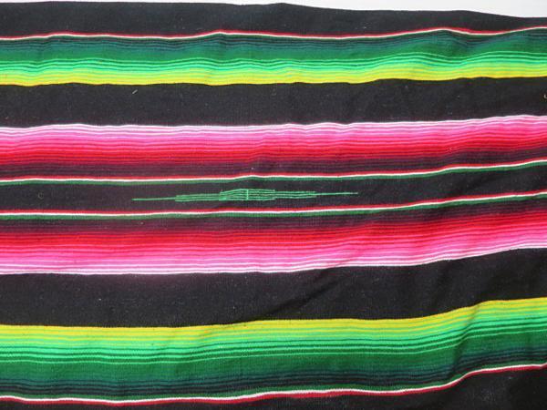 > USE13メキシカンラグunknownブランケットMexicoインディアン敷物ネイティブ ビンテージ センターダイヤ黒x赤x緑x白他マルチカラー