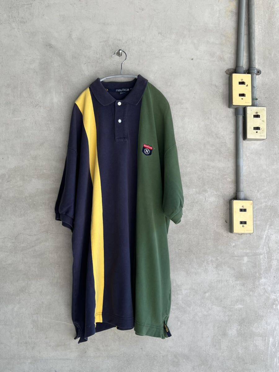 > 90s 90年代 NAUTICA ノーティカ ストライプ ポロシャツ ビンテージ 大きい古着 ビッグサイズ シルエット コットン 綿 半袖 XL