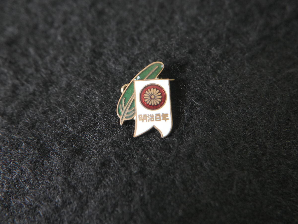 - 即決あり 昭和43年 日本政府主催 明治百年記念式典 バッチ 記章バッジ 緑の羽根 福井調製 菊紋 記念品 家紋 皇室 16弁菊花紋章 メダル