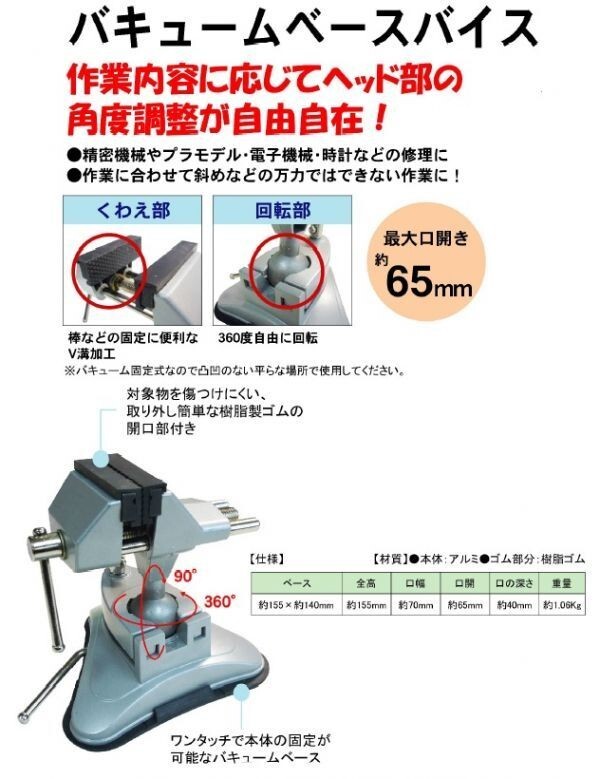 - 【角度調整自由自在】 H&H バキュームベースバイス HV-413B