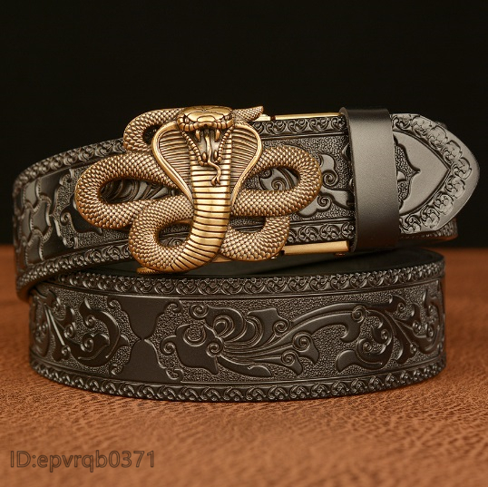 > レザーベルト 新品 オートロック式 本革 バックル コブラ 柄物 メンズベ ルト 幅3.5センチ 紳士 長さ調整可能 /黒
