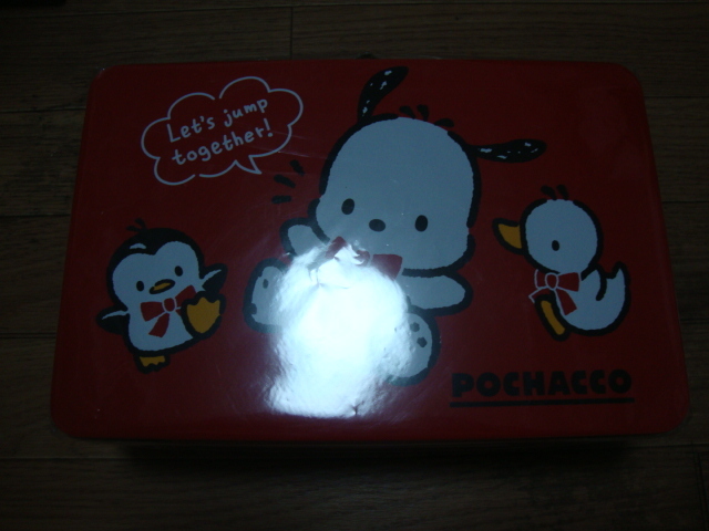 > ★ ポチャッコ トランク缶ケース 持ち手付き 35周年レッドリボン サンリオ sanrio キャラクター ★