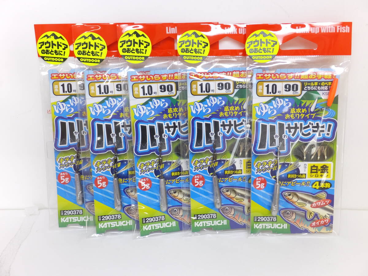 - セール◆カツイチ◆仕掛◆ ゆらゆら川サビキ 白x金 4本鉤 道糸1号 90cm 5個セット◆定価¥2,475(税込)