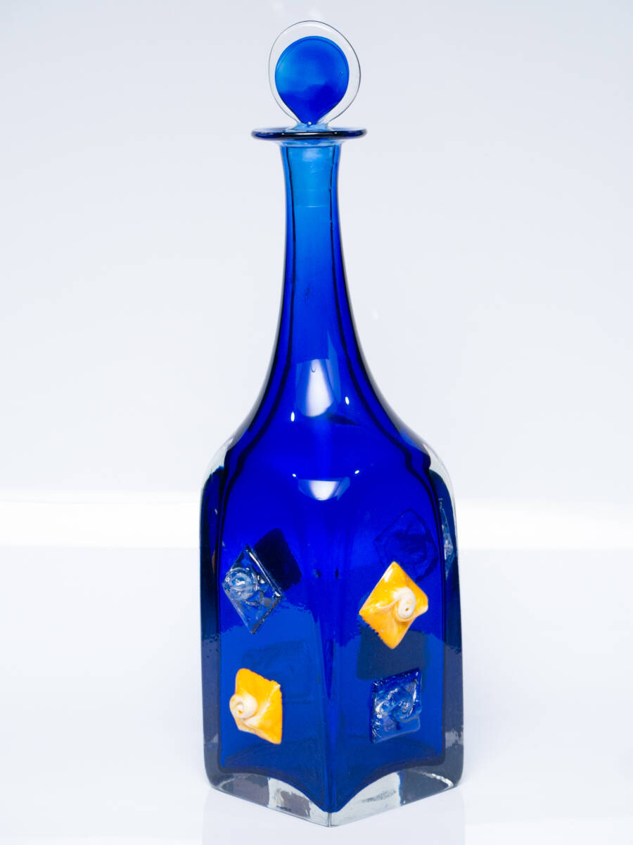 - 【値下げ交渉有り】 日本ガラス工芸の先駆者 岩田藤七 造 銘【街】 アップリケ 瑠璃色瓶 デカンタ デキャンタ 酒器 共箱